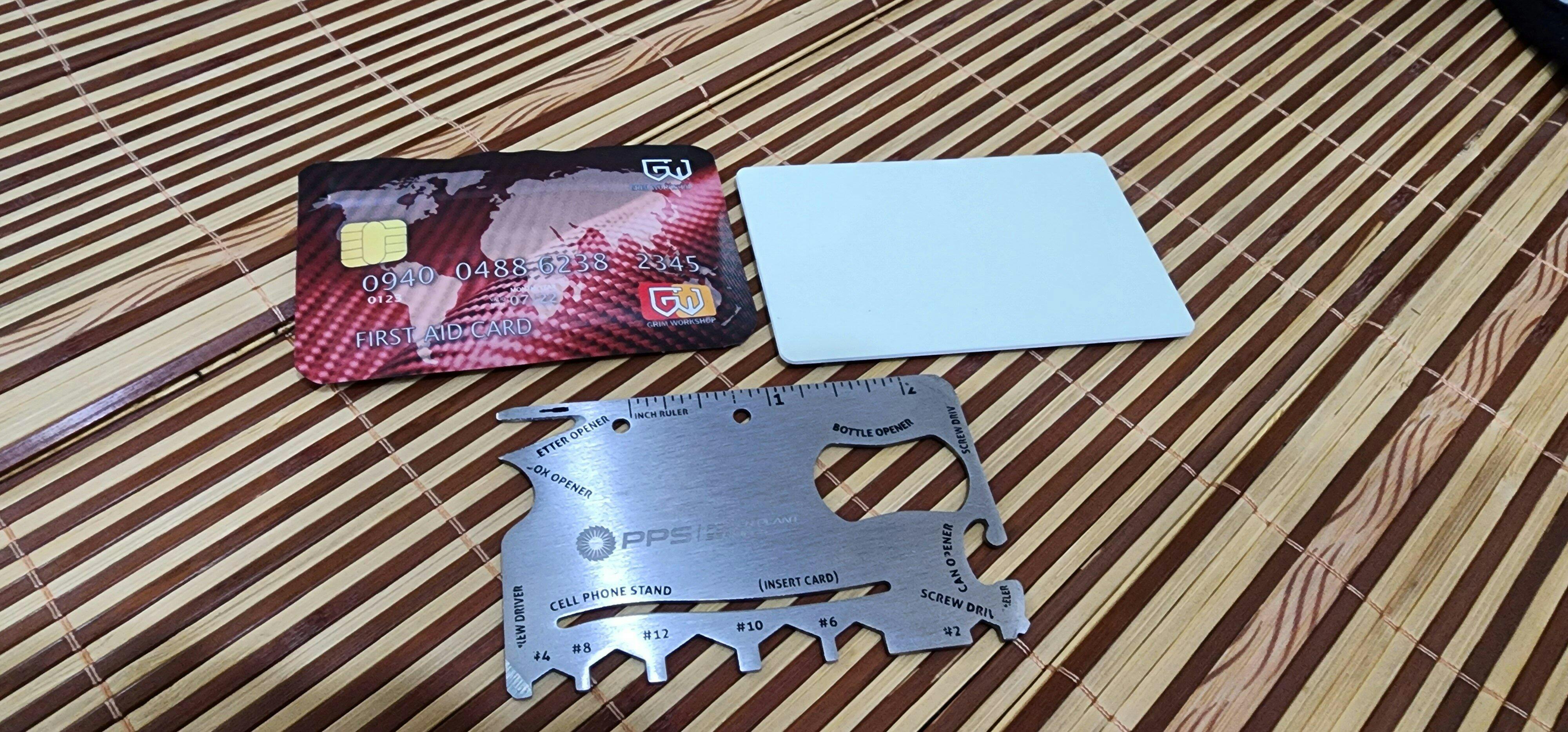 A: The First Aid Stash Card is designed to hold essential first aid items such as adhesive bandages, antiseptic wipes, tweezers, and small medications. You can customize the card to fit your personal first aid needs.