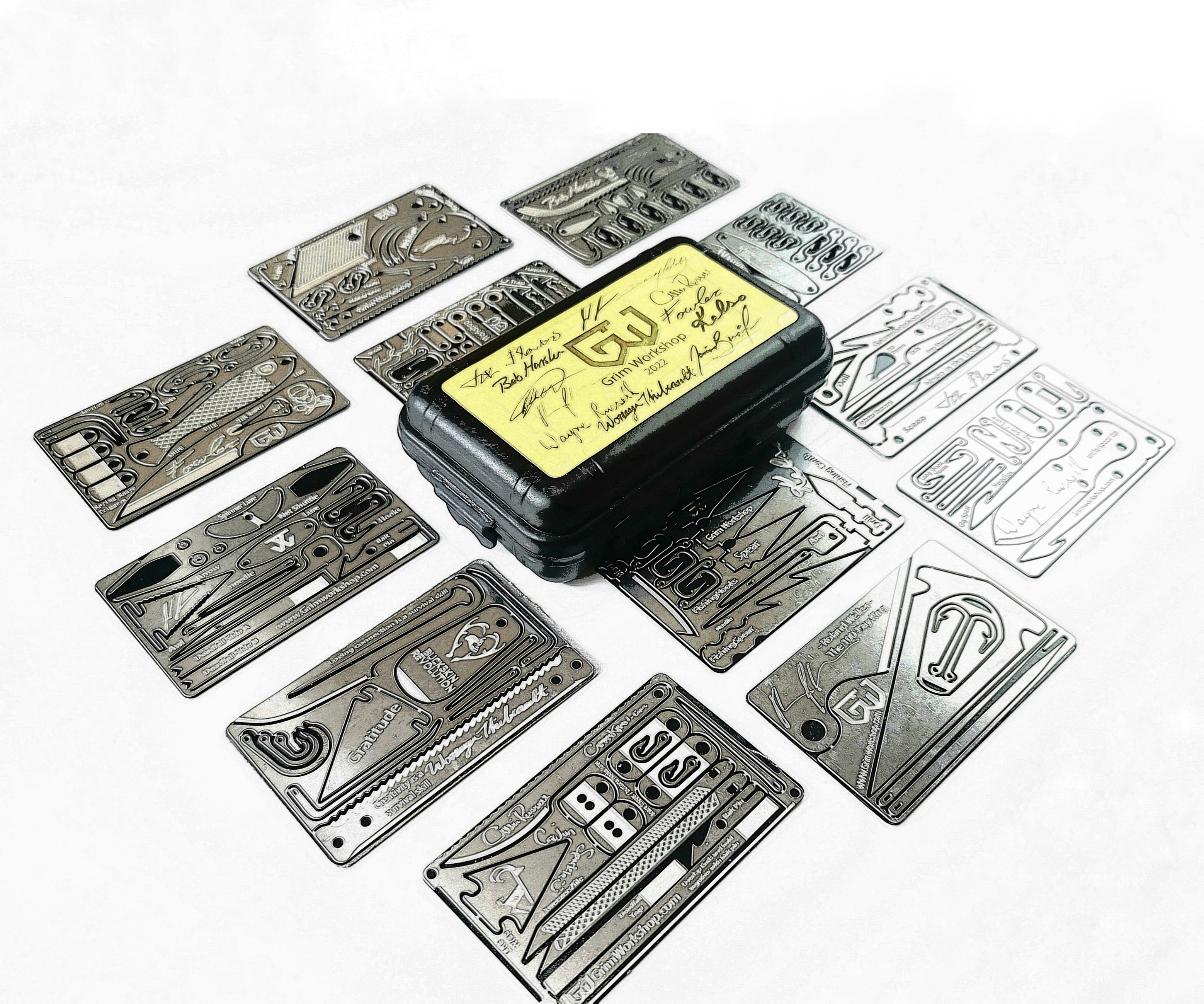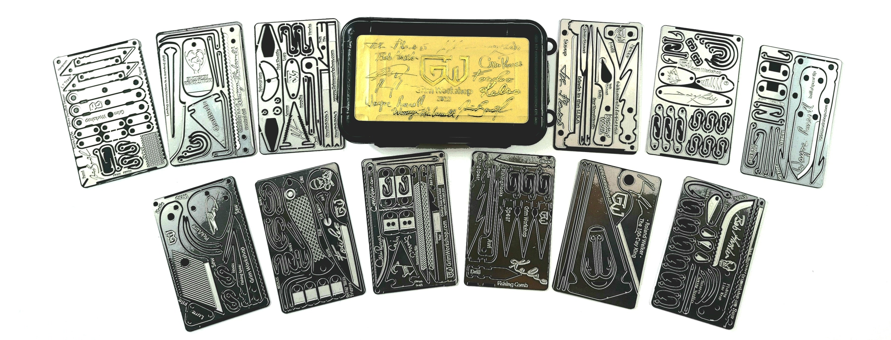 This bundled set contains all of our newest signature cards created as of January 2022, at a special reduced price, and includes a commemorative waterproof case with all of our current signature cards (Nearly 200 tools total) with all signatures on it, and a set of all four of Grim's sharpener cards! Altogether these people have over a century of combined experience in the bush, and have some of the most comprehensive survival knowledge there is. These card together put hundreds of tools right there in your pocket, specially designed and curated by master survivalists, and masters of the outdoors. Perfectly suited for a jeep tool box, or outdoor explorer kit.
