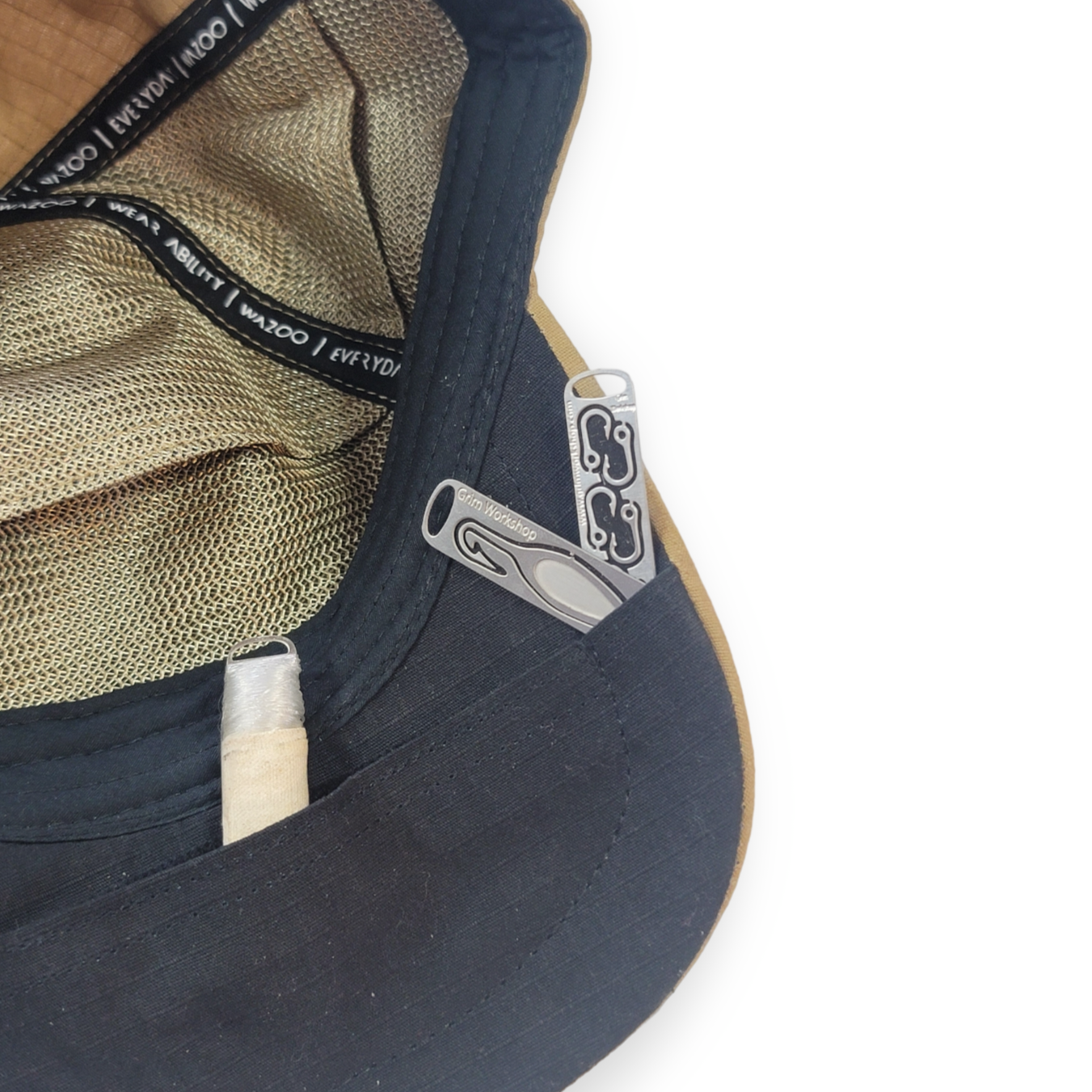 Grim's Micro Fishing Kit is the ideal size and shape to be stowed away or added to a backpack or jacket zipper pull for quick access. If carrying tools is not your preference, you can put the kit in a small tin, in a backpack, or in Grim's hidden pocket patch. Grim's Moral patches were designed with a pocket in the back to fit several Micro Tools comfortably and discreetly on any hook and loop material.