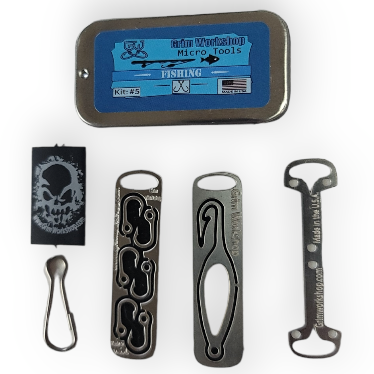 Grim's Emergency Fishing Kit is crafted with durable materials for extended use, and come with a Tool Retention System for repeatability. With our system, any removable part of a tool can be taken out, used, and re-attached - no single-use experiences. We designed our micro fishing kit to be taken out, practiced with, and become familiar with, so you know how to use them should the time arise.