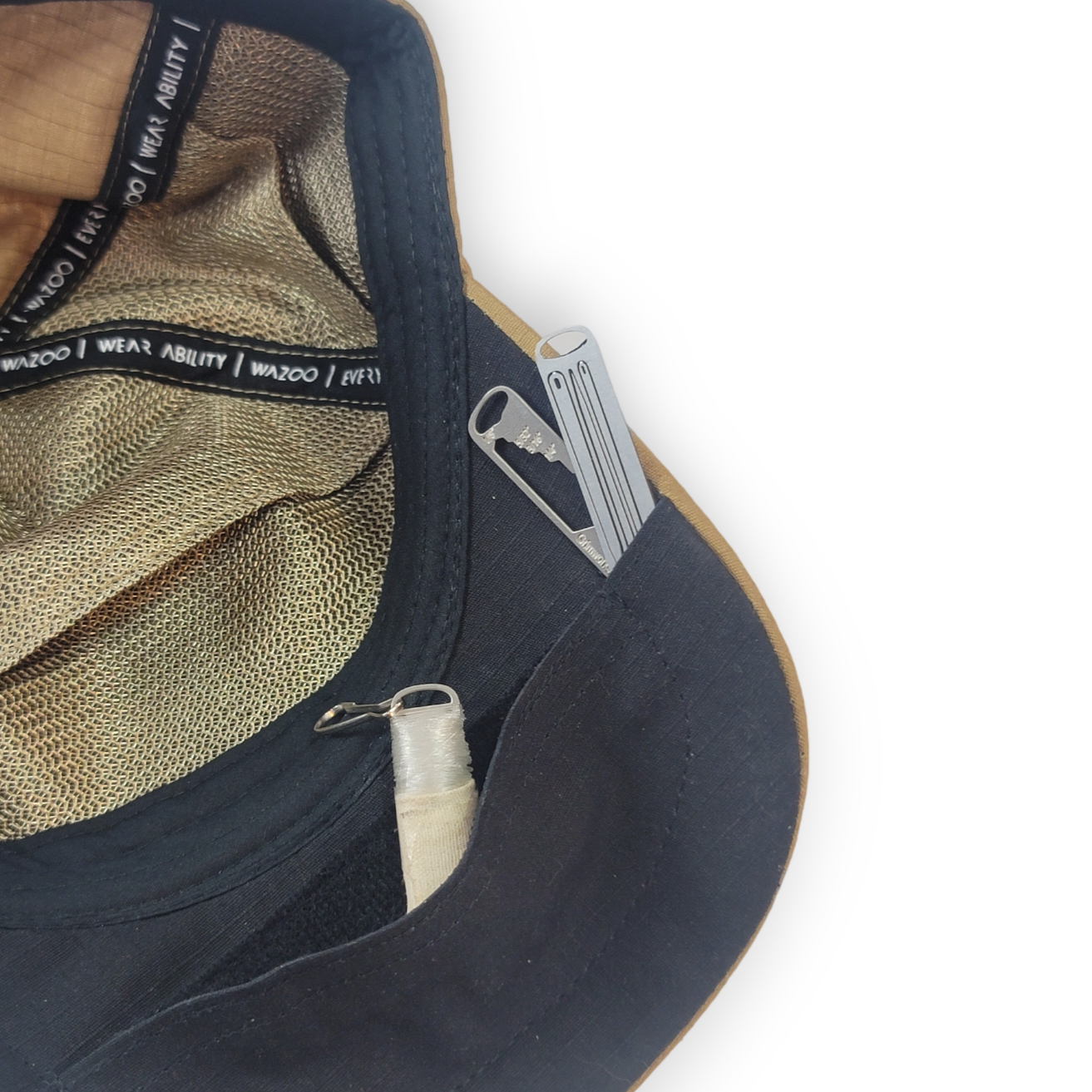 Grim's Tool Retention System utilizes neither magnets nor adhesive, both of which could lead to de-magnetized credit cards or mess, yet provides the grip expected of such materials without sticky residue.