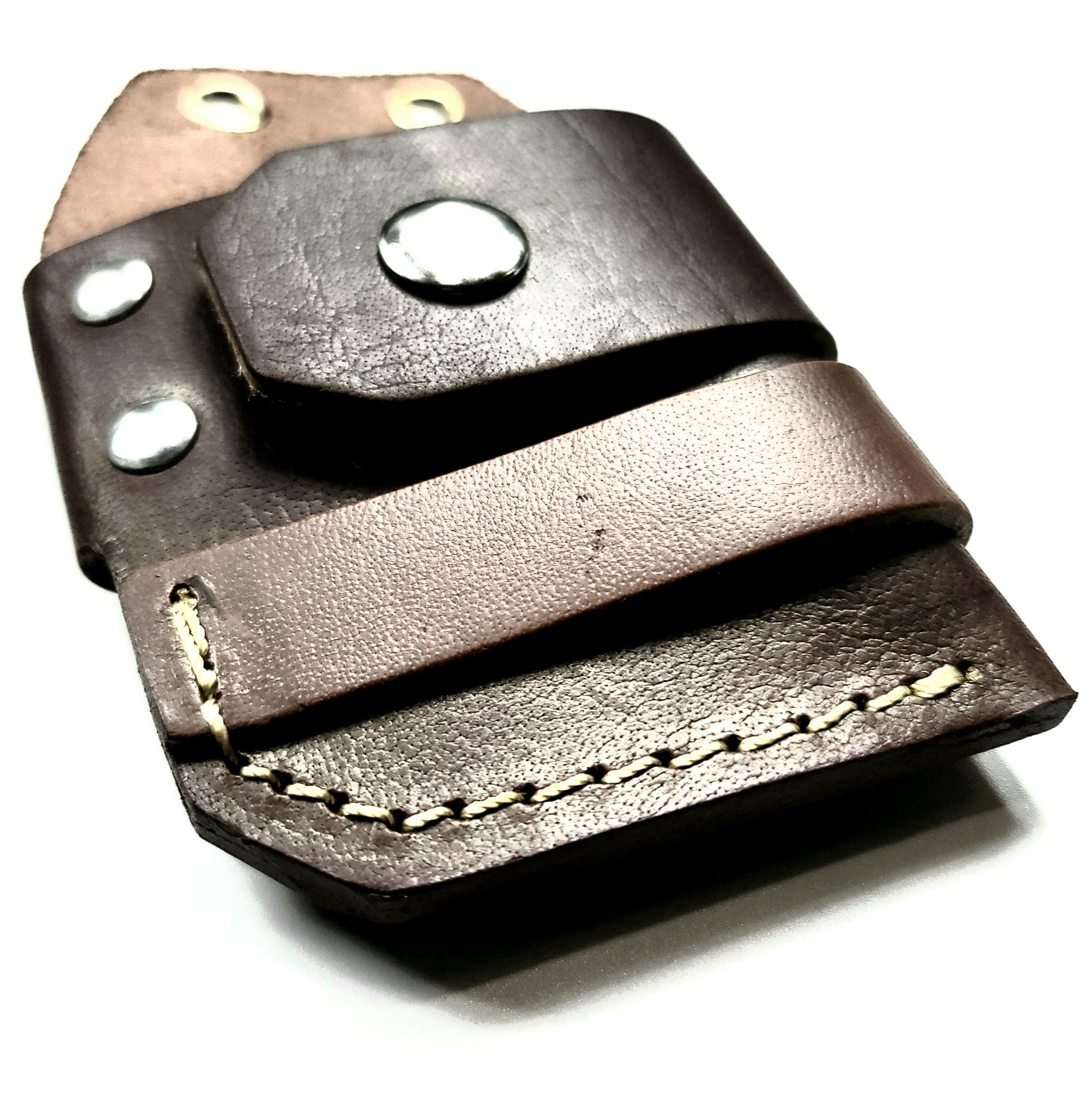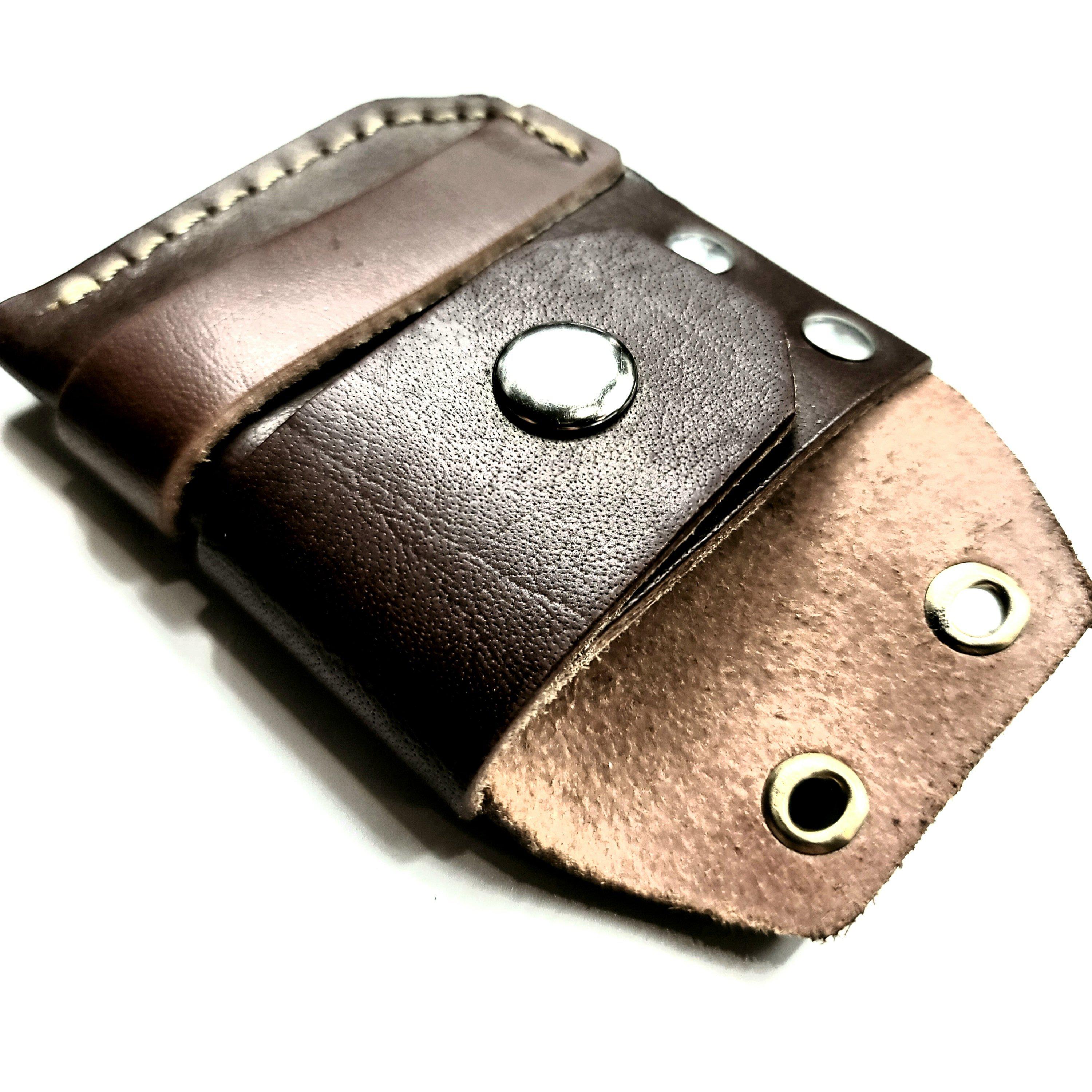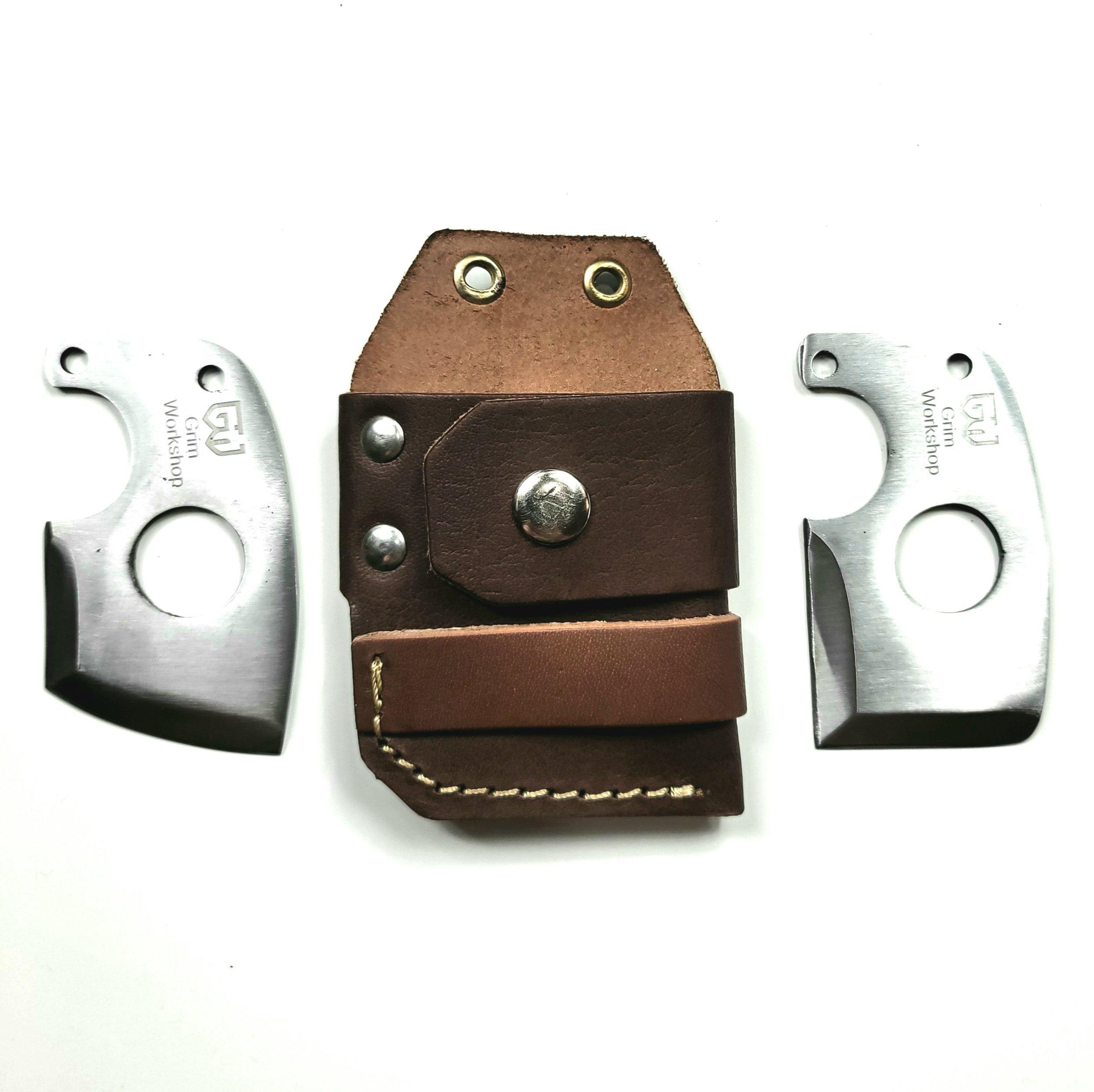 Grim's Axe and Adze Card Tool Scout Carry Sheath is a horizontal carry knife sheath that was designed to fit our new Axe and Adze multi tool blade cards. This edc multi tool sheath is a scout carry sheath that was designed for multiple carry options and to be a true "Go to" setup. Intended for belt carry, boot carry, strapped onto a backpack, or put on a carabiner or neck lanyard, this edc sheath was designed to be carried just about anywhere, and hold not just our Axe and Adze cards, but also any of our cards to make it not just a scout knife sheath, but a credit card sheath as well.