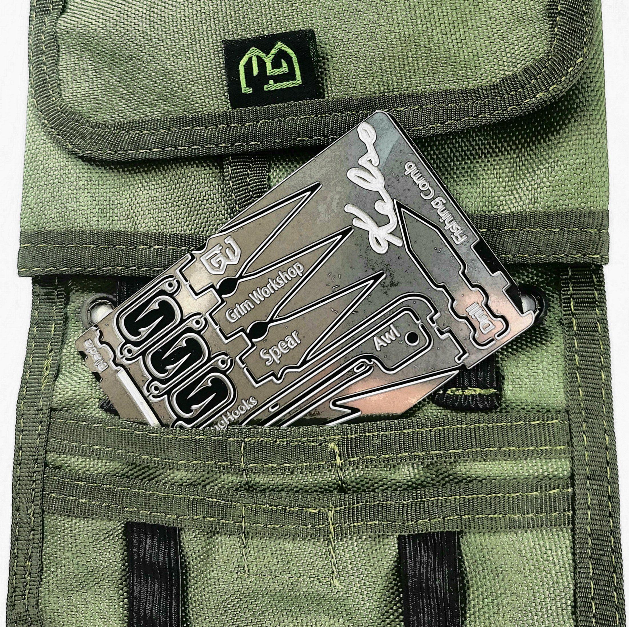 The Bushcraft Kelso Card is all reusable thanks to our custom fabricated Tool Retention System. This unique feature allows you to remove any item from your card, use it, and then return your tools back to the gear keeper card to use again another day. Grim's tool retention system is nonmagnetic (so no de-magnetized credit cards) and nonadhesive (so no gunk build-up on your gear or wallet). Find out More about our TOOL RETENTION SYSTEM HERE