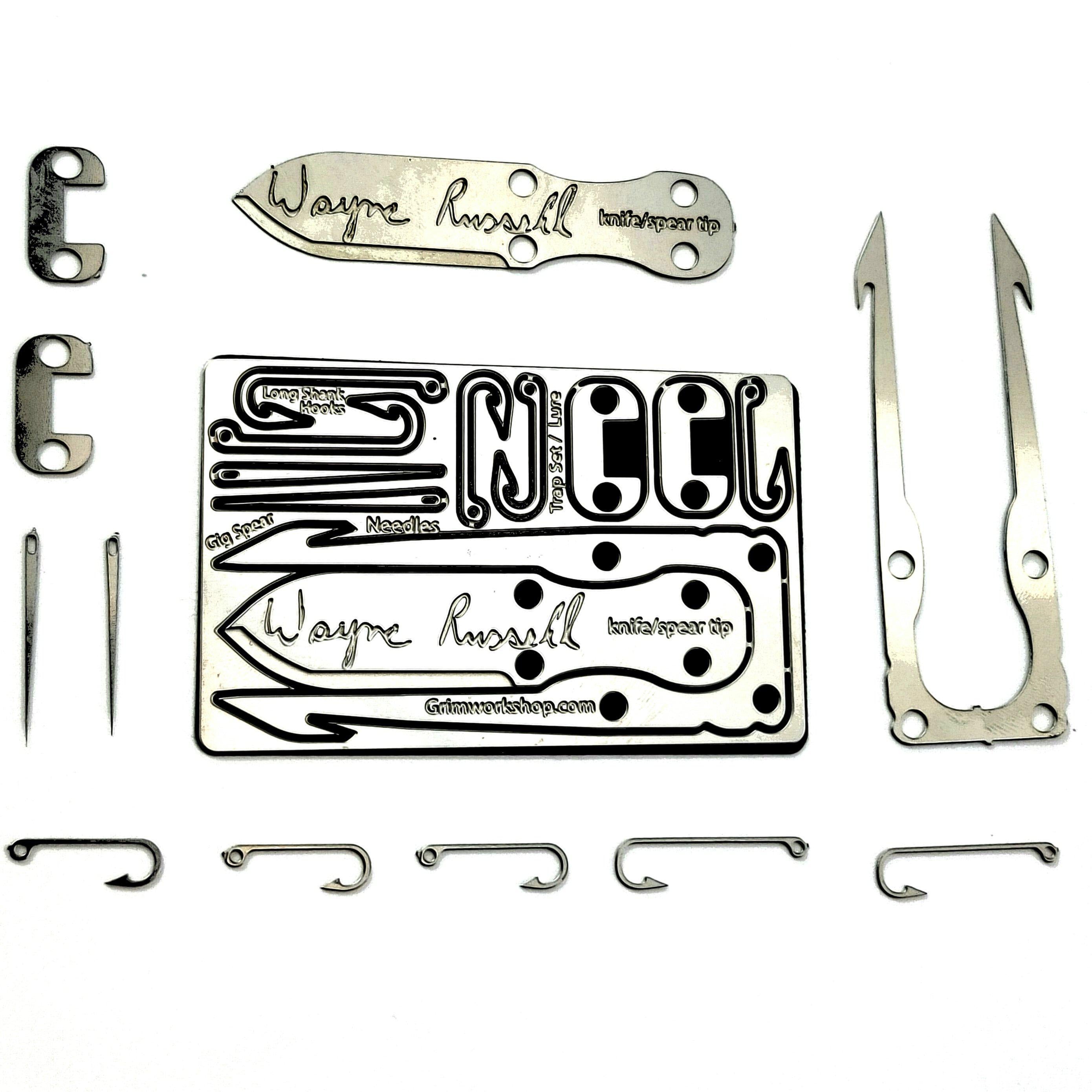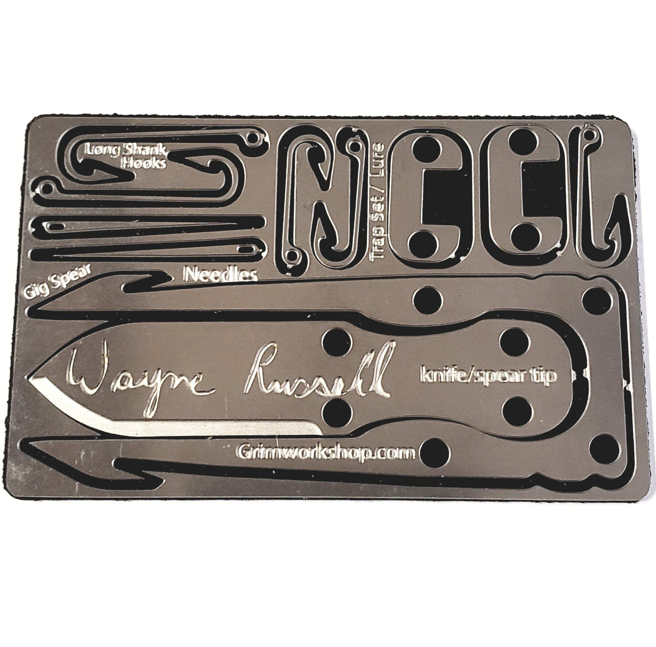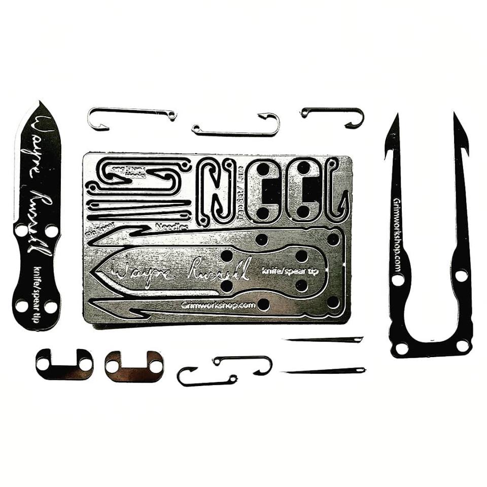 The Wayne Russell Signature Card are all reusable thanks to our custom fabricated Tool Retention System. This unique feature allows you to remove any item from your card, use it, and then return your survival items back to the multi tool card to use again another day. Grim's tool retention system is nonmagnetic (so no de-magnetized credit cards) and non-adhesive (so no gunk build-up on your gear or wallet). Find out More about our TOOL RETENTION SYSTEM HERE