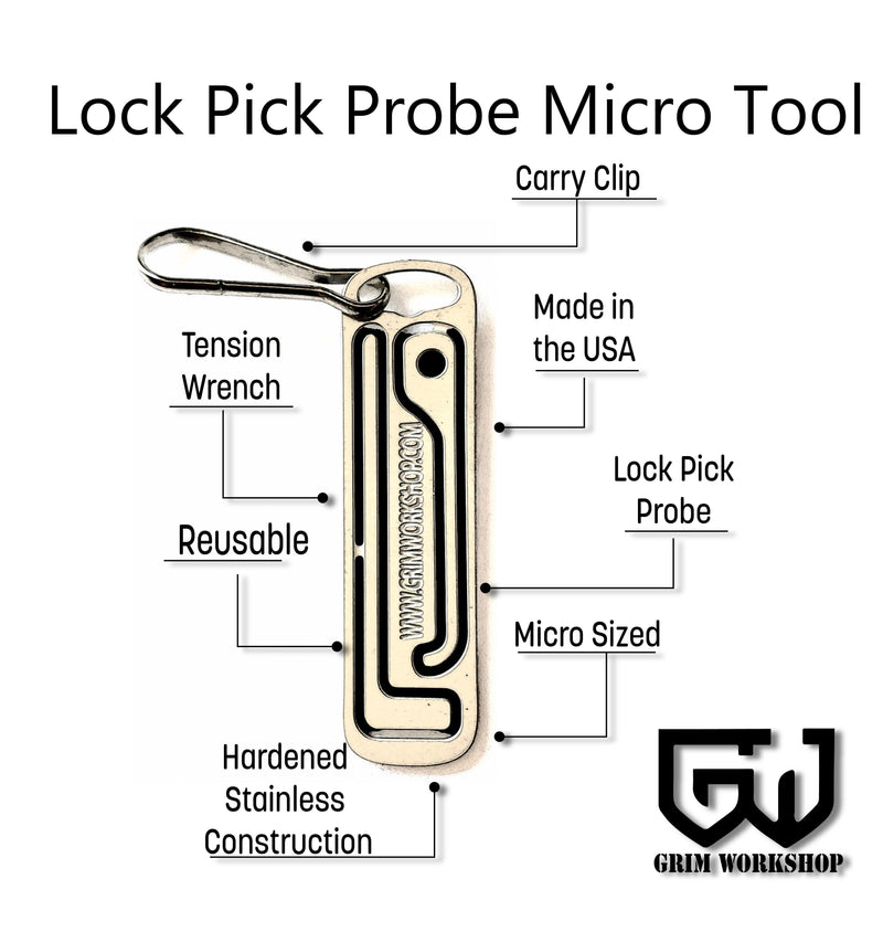 Learn how to pick a lock with a credit card size lockpick kit and how to escape handcuffs and other restraints using Grim Workshop credit card lockpick kit. The best Credit card lock pick set made in the USA and specially designed for lock picking and escape and evasion tools. These are some of the best credit card lock pick sets perfect as part of an urban survival kit, or for accidentally locking yourself out of the house, opening many types of locks, or for escaping illegal restraints in an emergency situation.