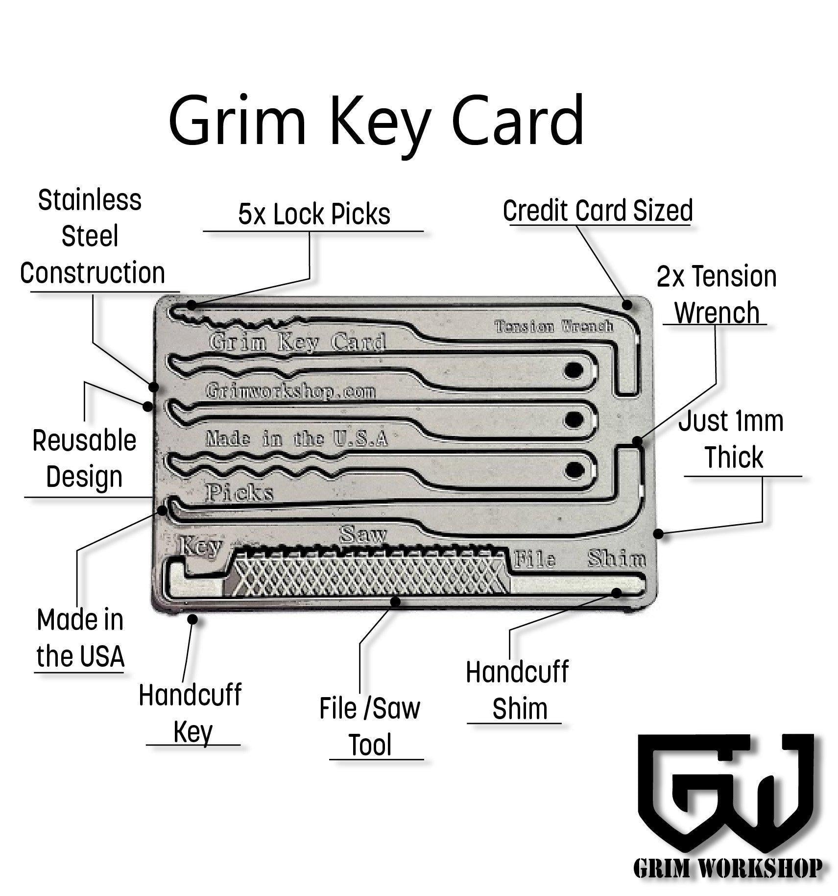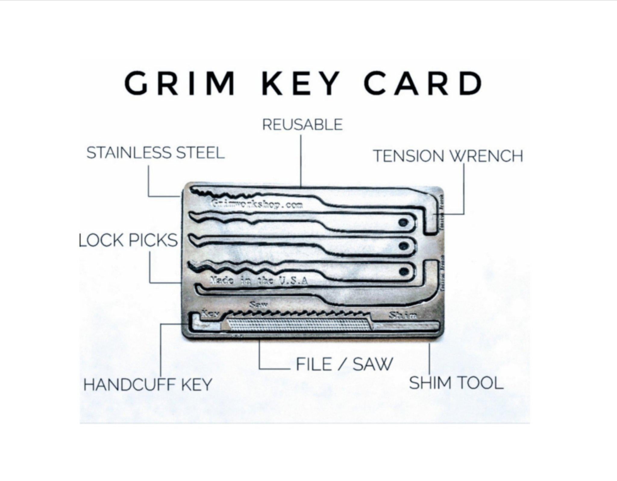 • Proudly Made in the USA - Grim supports American manufacturing, the credit card lock pick multi tool was designed, manufactured, and had its materials sourced here in the U.S.A.