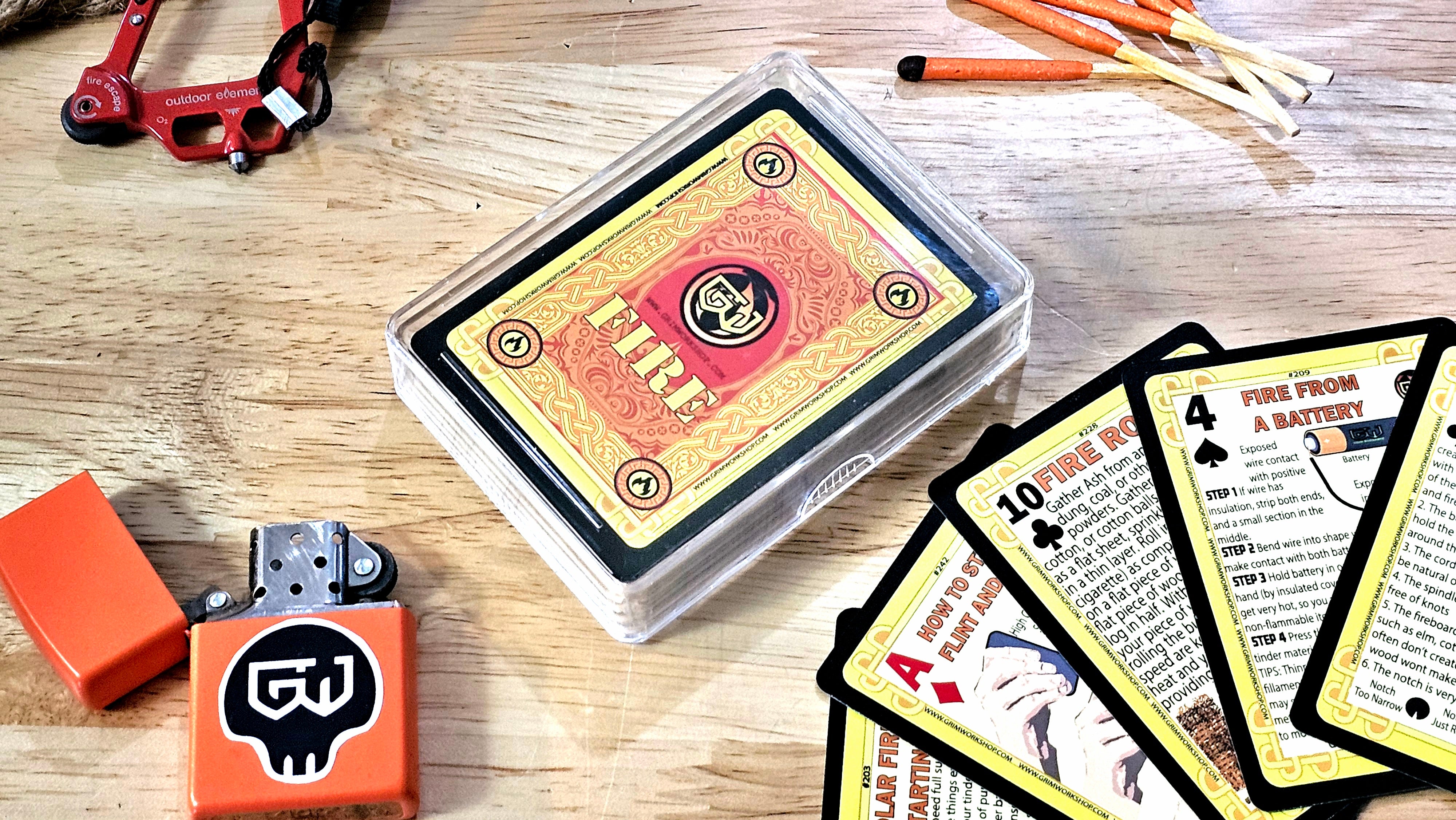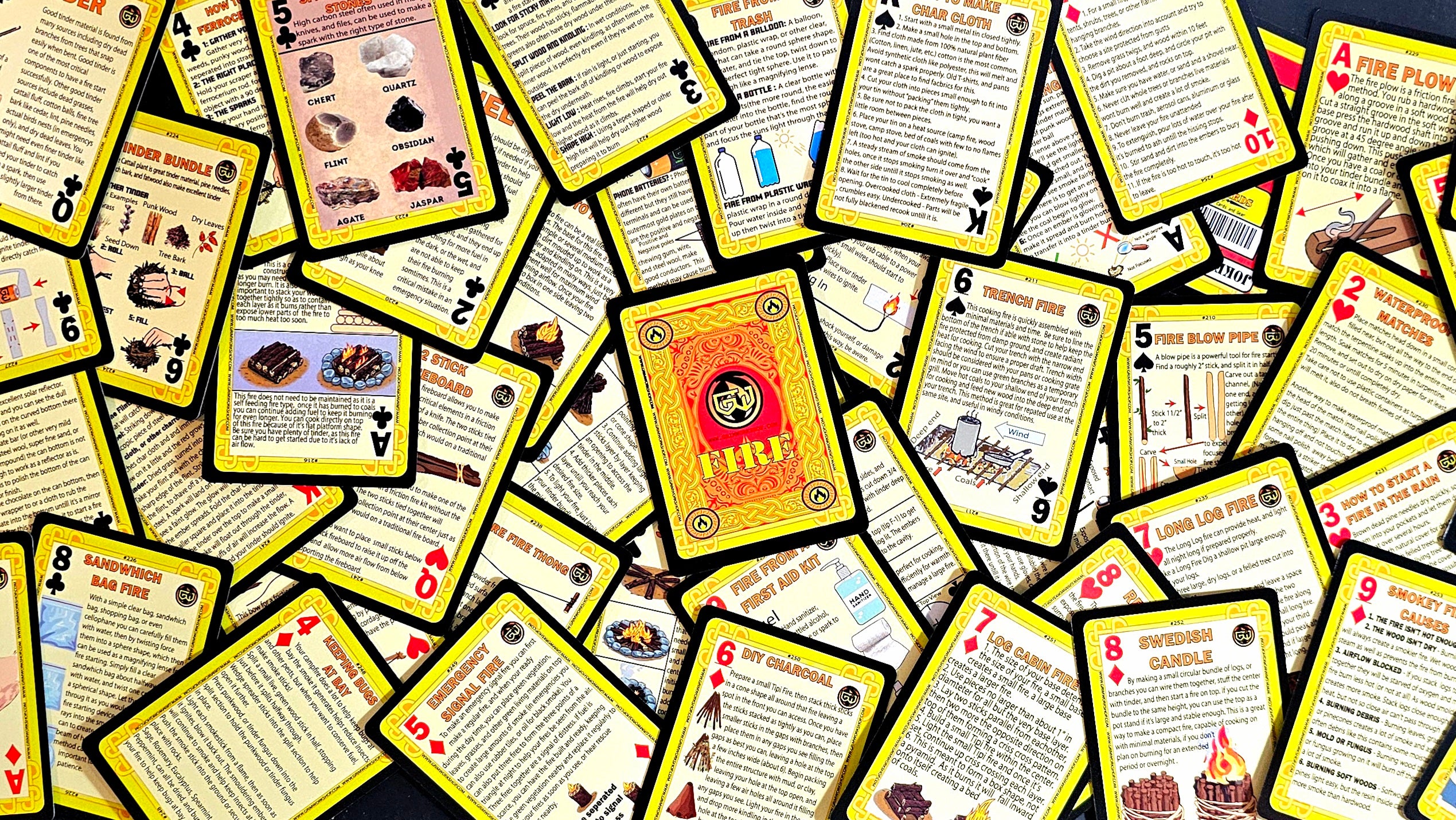 The Fire Deck is not just a set of cards—it's a comprehensive survival library that fits in your pocket. Over 54 pages (Cards) of information that include practical knowledge that could make all the difference in a survival situation cleverly doubling as a common set of playing cards. Whether you're out in the wild or in an urban setting, these cards are designed to help you stay prepared, informed, and ready for anything.