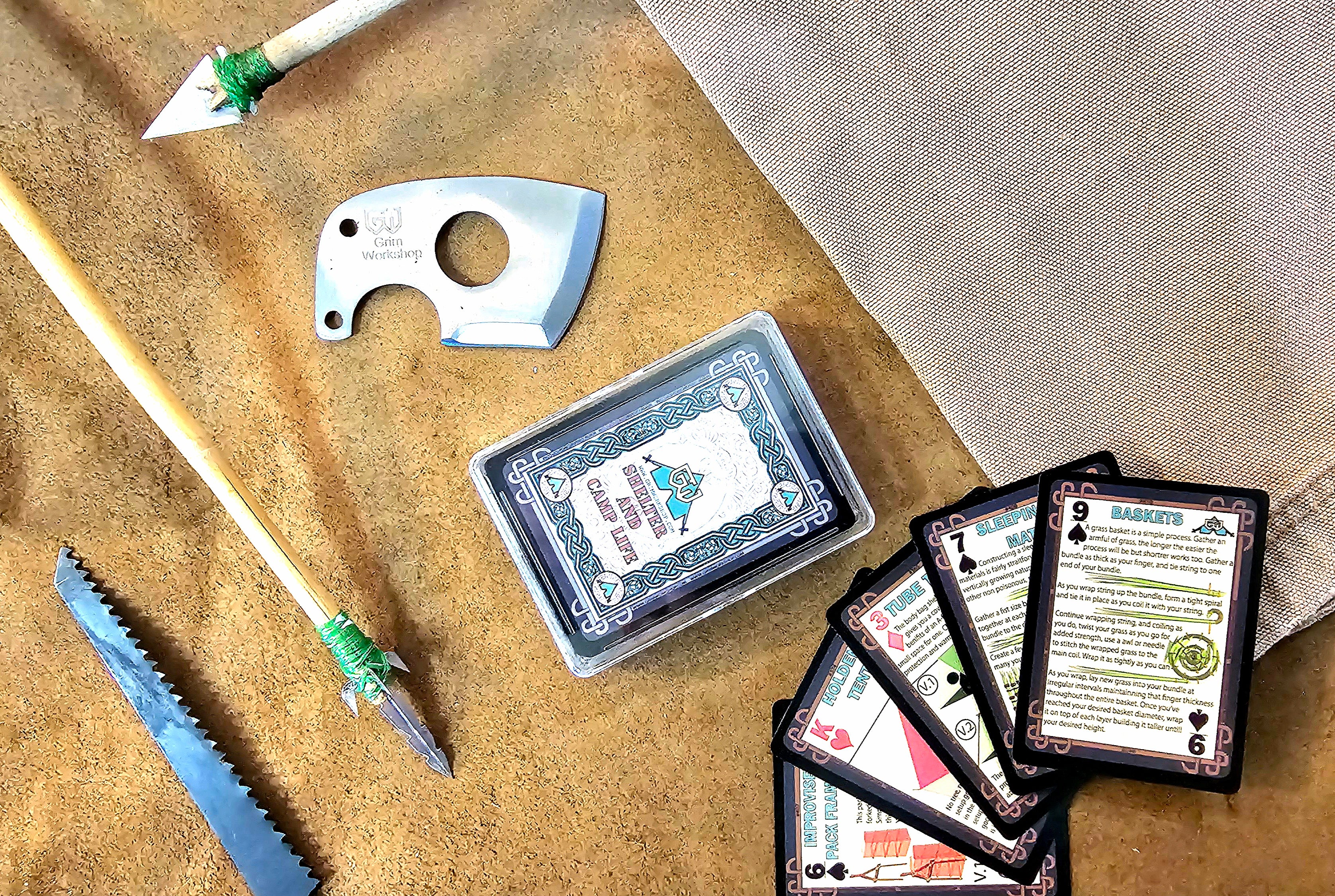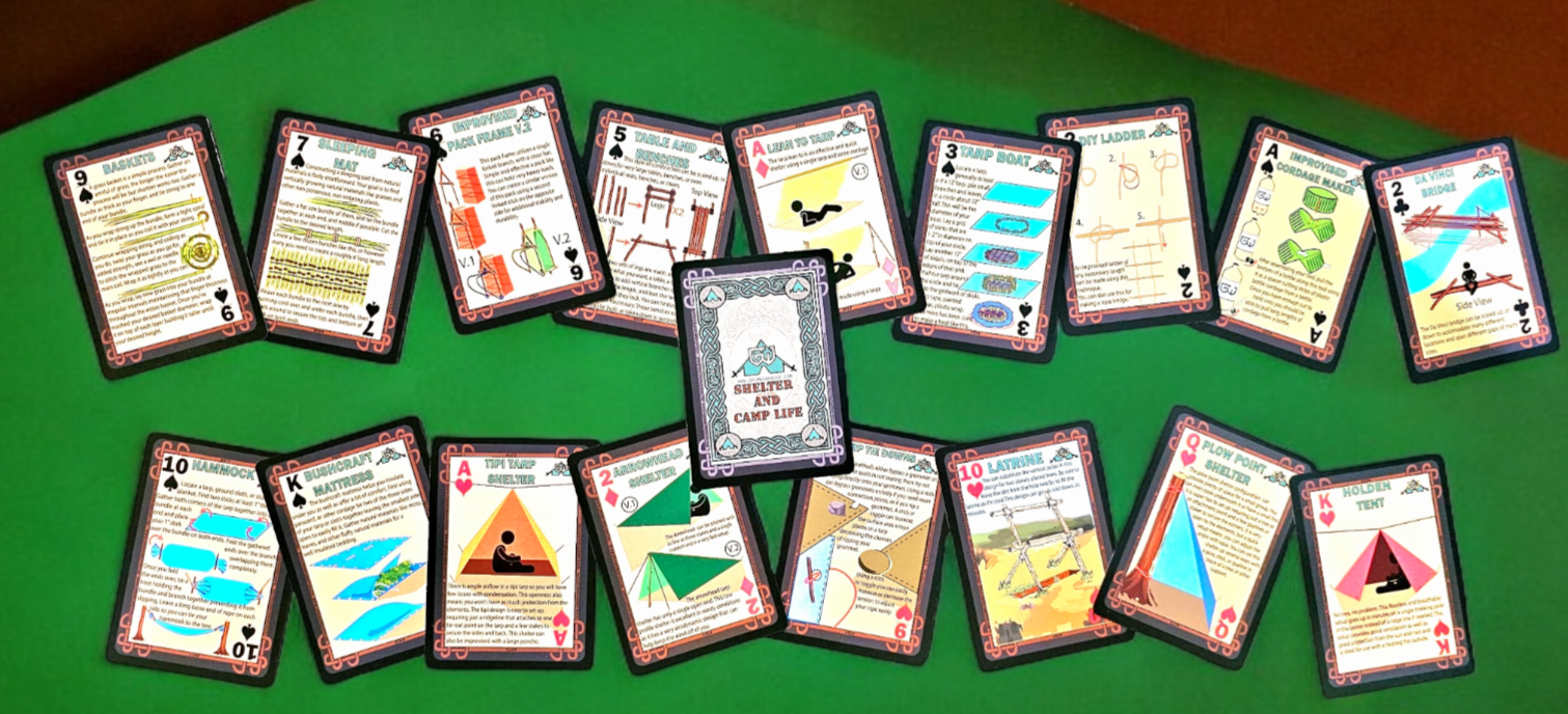 Learn how to build different types of shelters and manage camp life effectively. This deck includes many tarp setups for shelters, improvised shelters from natural materials, and instructions for making structures like bridges, baskets, benches, and tables. It even covers how to make pottery, from locating clay to processing and firing it in the field. Perfect for someone who loves the outdoors, or for preparedness.