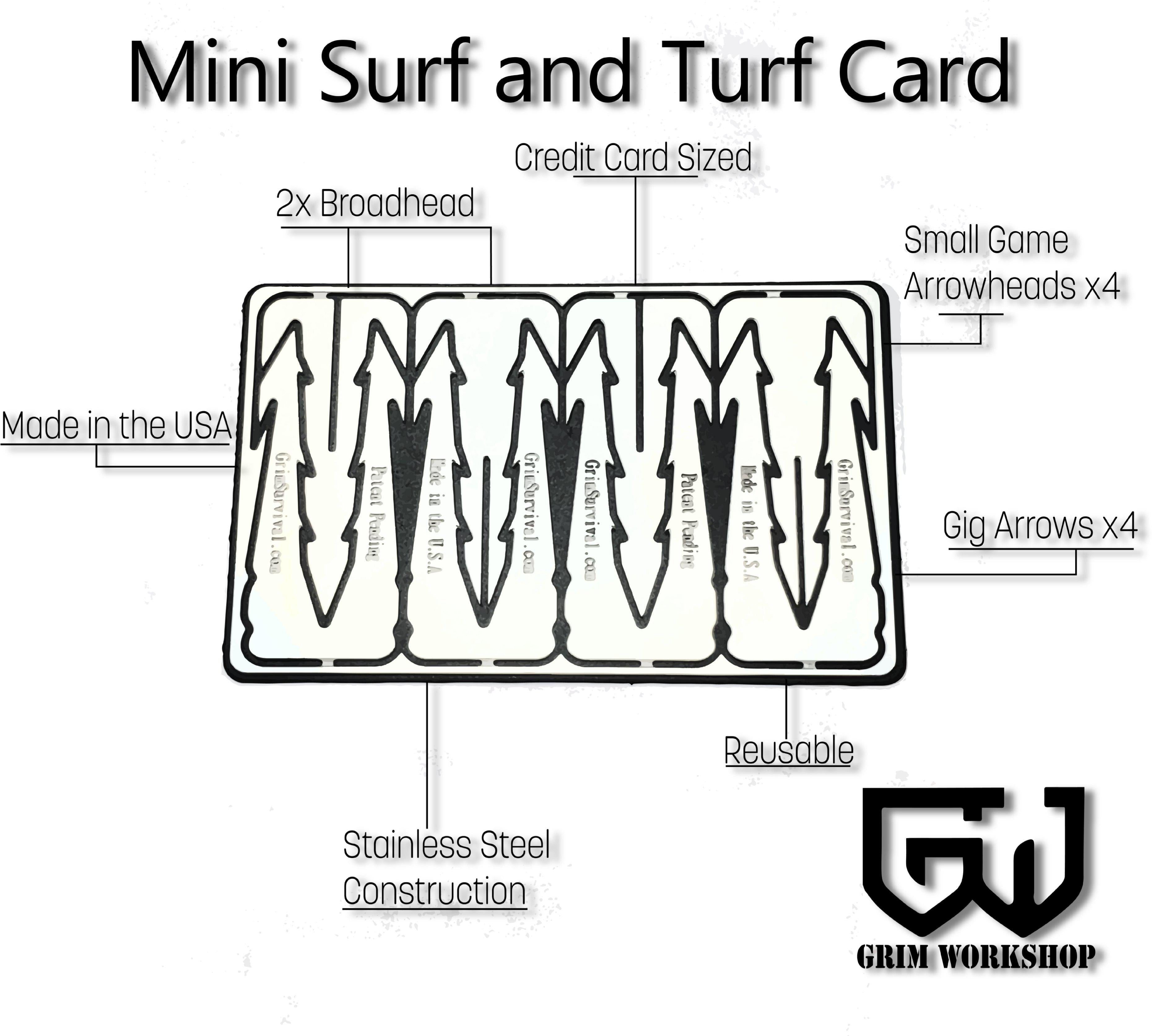 • Standard Credit Card SizeThe Surf and Turf survival arrow card is the same size and thickness as a standard credit card, so it fits into a standard wallet slot.