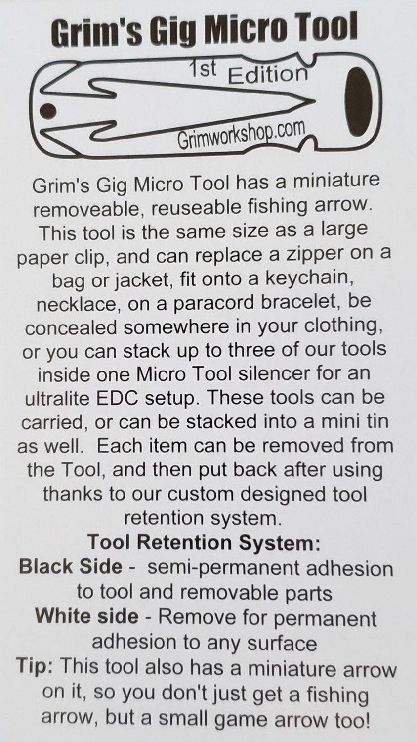 • 1 x Grim Gig Micro Tool (includes removable gig spear and arrow point)