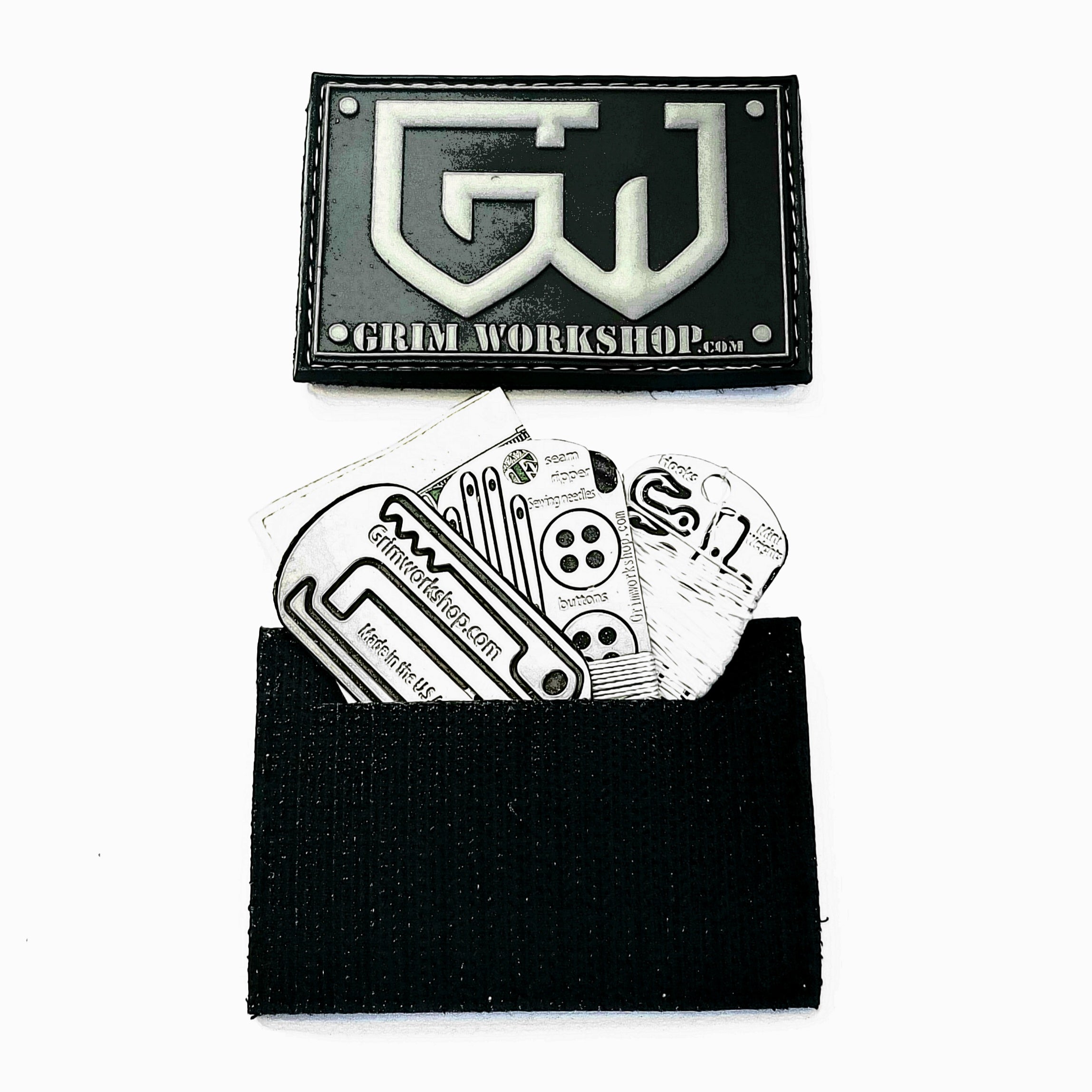 Built with durability in mind, this bag uses metal D-rings, buckles, and grommets, eliminating plastic components for a truly rugged build. The front boasts a sturdy metal D-ring for attaching essential Grim Workshop Micro Tools or Dog Tag Tools, while the metal zippers are also designed with easy attachment points for added gear. To top it off, the bag includes a patch panel on the front, where you can attach any morale patch of your choice, and as an added bonus, you’ll receive a FREE Grim Stash Patch with your order. This unique morale patch has a hidden pocket, adding another layer of functionality to your EDC setup.
