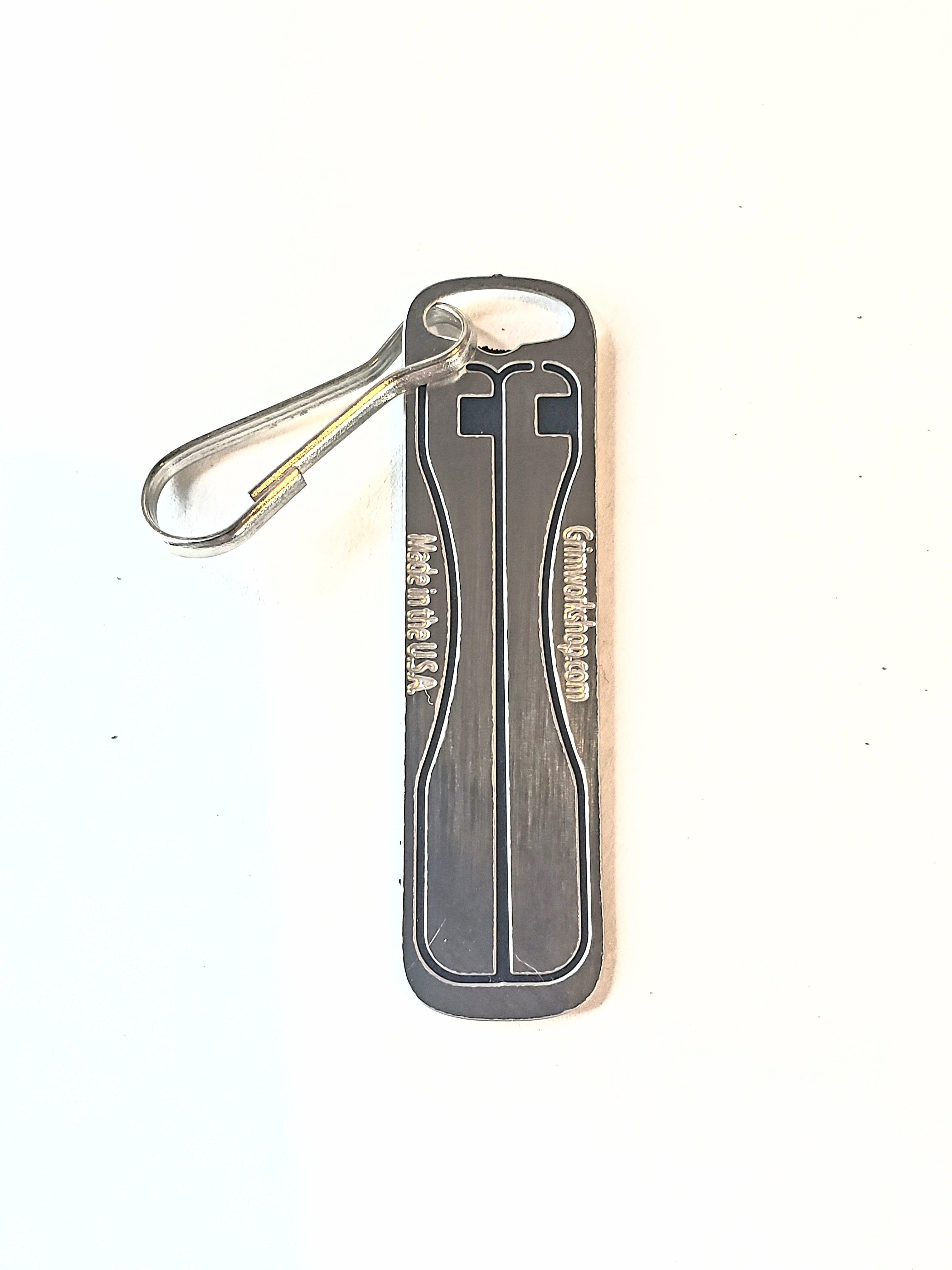 Grim Micro Tools are cut from 1mm thin stress hardened, surgical grade stainless steel, and fits on a necklace, zipper pull, or keychain, So you can have it with you at all times, no compromises. You don't have to remember to carry it, because its always there. And there's definitely no bulk!