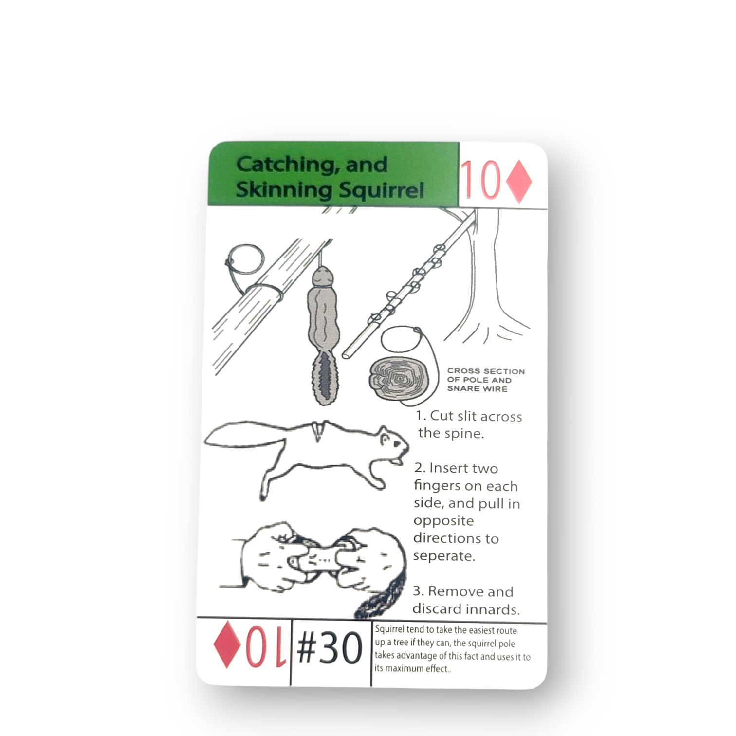 By adding our Squirrel Skinning and Trap Construction Guide Tip Card to your outdoor gear, you're equipping yourself with the essential knowledge and skills to prepare squirrel meat and capture squirrels efficiently. Whether you're looking to enhance your hunting experience, explore wilderness survival techniques, or simply enjoy the rewards of a successful squirrel harvest, our tip card is your trusted companion.