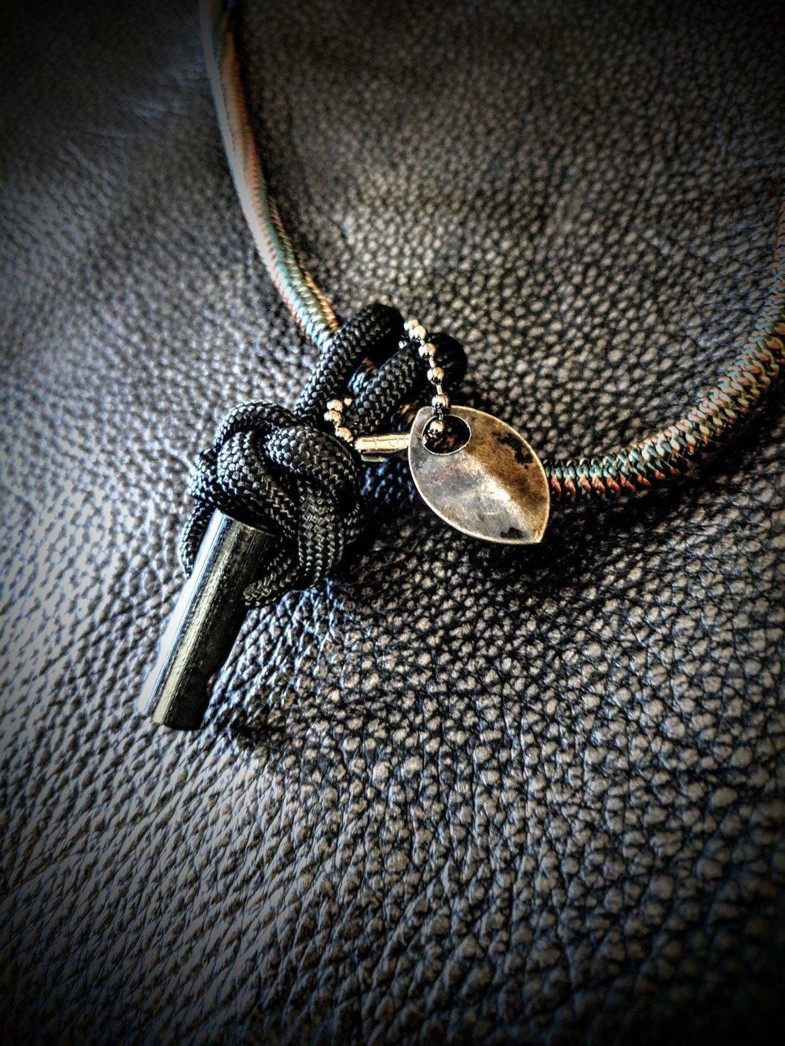 Grim's Firestarter Charm is a complete fire kit packed into a small beautifully knotted charm that can be attached to one of our necklaces, or your own. This charm also fits perfectly onto a keychain or backpack charm.